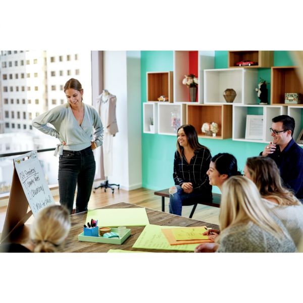 The Post-it Easel Pads Dry Erase Tabletop Easel Unruled Pad is a versatile and convenient tool for meetings, presentations, and brainstorming sessions. The tabletop design includes a built-in stand, making it easy to set up and use anywhere. The premium dry-erase surface on one side is perfect for fine-tuning notes, while the self-adhesive sheets on the other side can be stuck on virtually any surface for up to 48 hours and removed easily without damaging walls. This makes it a great option for smaller office meetings or on-the-go presentations. The paper used in the pad comes from well-managed forests where trees are replanted, making it an eco-friendly choice. Overall, the Post-it Easel Pads Dry Erase Tabletop Easel Unruled Pad is a great tool for organizing and communicating ideas in a flexible and portable manner.